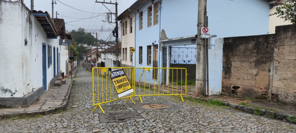 Vídeo – Ouro Preto–MG – Rua Tomé Afonso com trânsito de veículos impedido